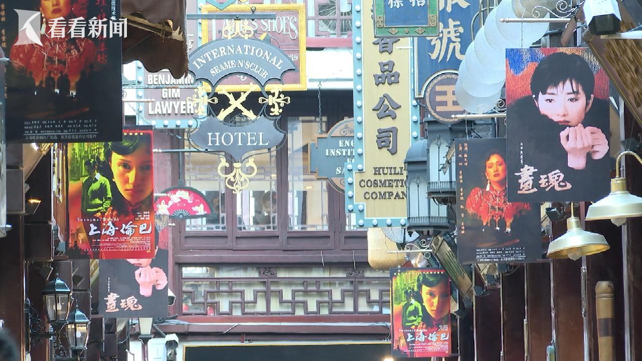月份牌中,身着旗袍的摩登女郎,变换着不同的动作和表情。老街上,《上海伦巴》、《摇啊摇,摇到外婆桥》等上海老电影在飞檐翘角的窗格间流转,豫园老街与电影节梦幻联动,向游客们展示着光影的魅力。
